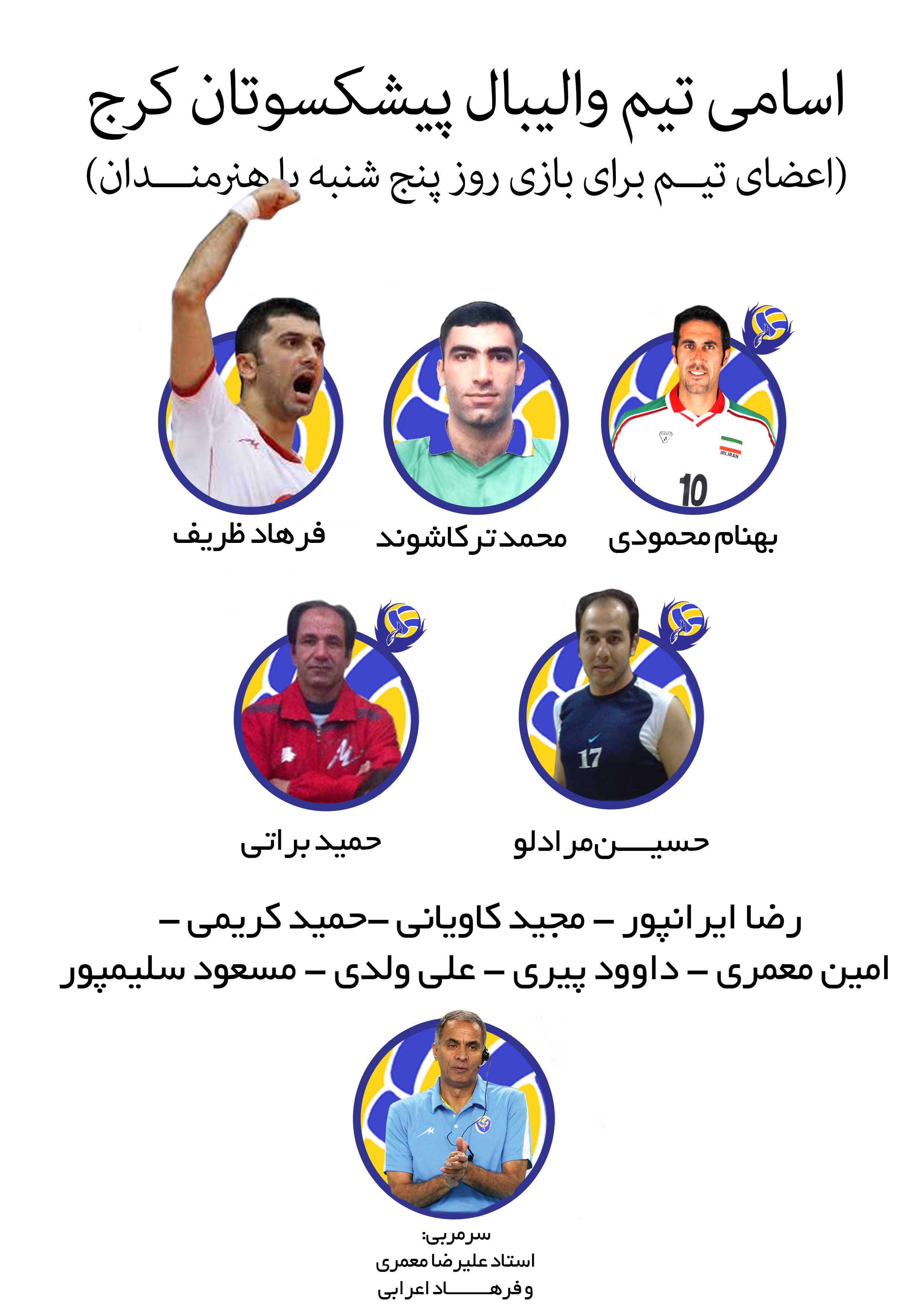 تیم ملی والیبال ایران در گروه یک لیگ جهانی والیبال با تیمهای لهستان، برزیل و ایتالیا همگروه است و نهم خرداد ماه در نخستین بازی خود به مصاف ایتالیا میرود. ظهر امروز کادر فنی تیم ملی اسامی 22 بازیکن را جهت شرکت در 12 مسابقه دور مقدماتی در لیگ جهانی در سال 2014 به FIVB اعلام کرد که به شرح زیر است: پاسورها: میرسعیدمعروف، مهدی مهدوی، محمد طاهر وادی مدافعان وسط: سید محمد موسوی، عادل غلامی، علیرضا جدیدی، آرمین تشکری، سامان فائزی، سعید مصطفی وند دریافت کنندهها: مجتبی میرزاجانپور، فرهاد قائمی، رحمان داودی، علیرضامباشری، آرش کشاورزی، پوریافیاضی، میلاد عبادی پور قطر پاسور:امیر غفور، شهرام محمودی، رضا قرا لیبروها: فرهاد ظریف، عبدالرضا علیزاده، مهدی مرندی تیم ایران در سال گذشته و در نخستین دوره حضور خود در لیگ جهانی موفق به کسب مقام نهمی این رقابتها شد. |